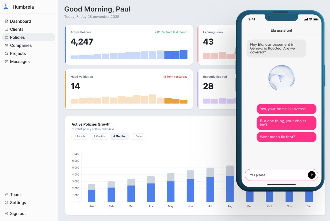 Humbrela flags gaps, sends renewal alerts, and automates follow-ups. You focus on the conversations that matter.